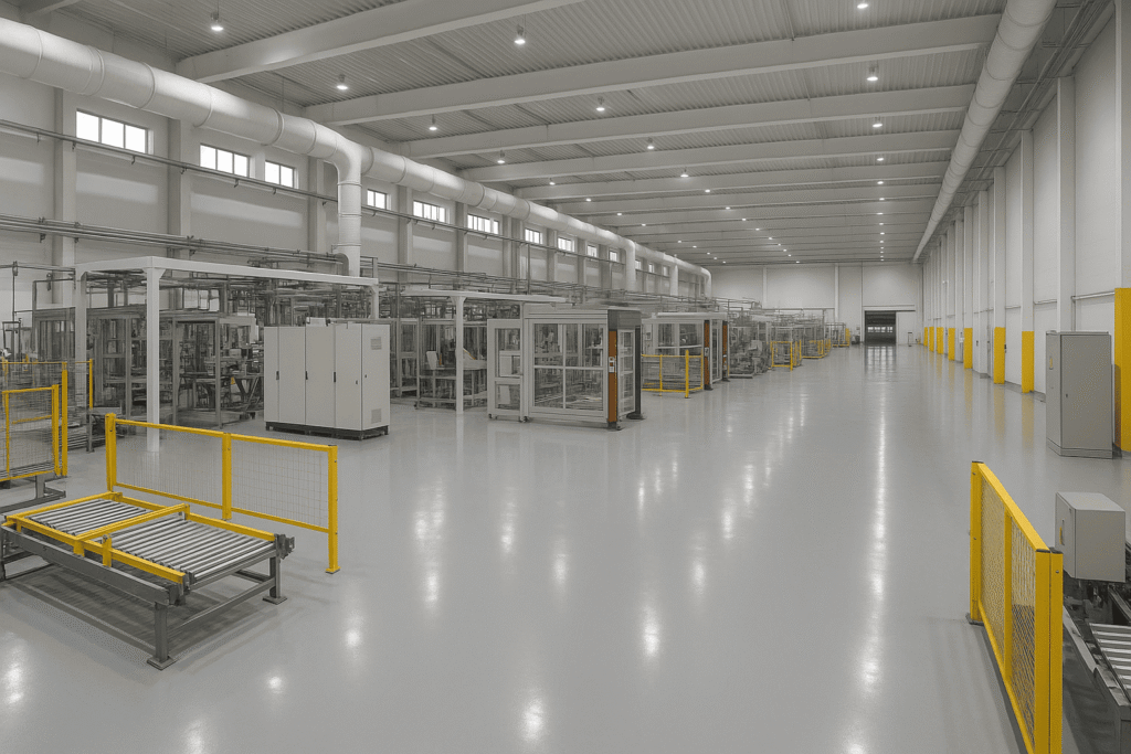 Sistema formado por múltiplas camadas de resina epóxi, ajustadas conforme a exigência de resistência mecânica da área. Recebe pintura final com a cor desejada, proporcionando acabamento uniforme e excelente performance em ambientes industriais de médio a alto tráfego.